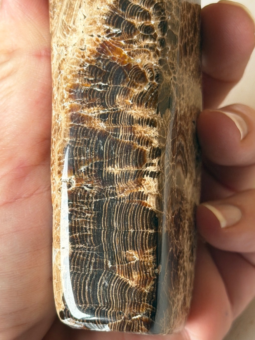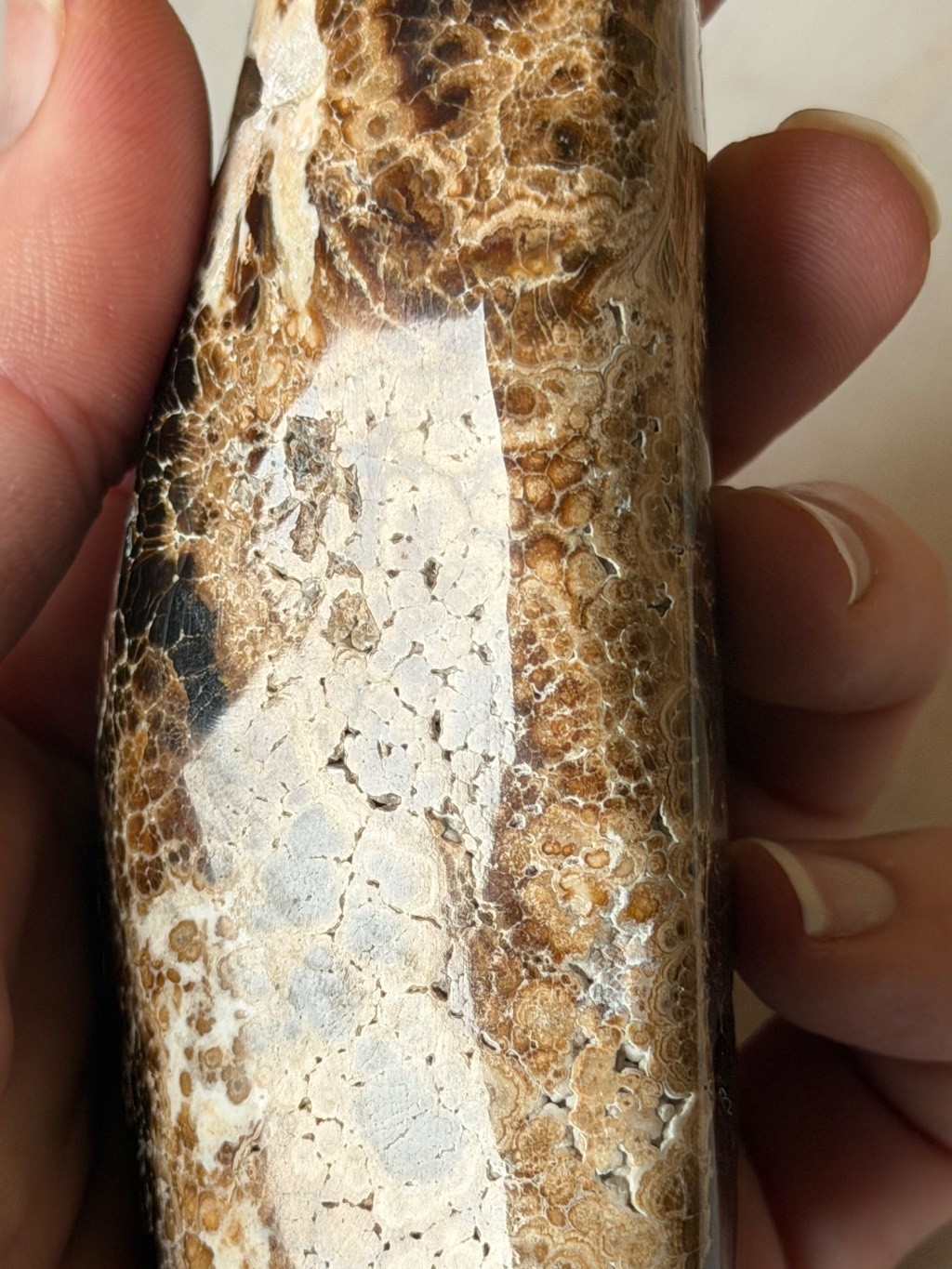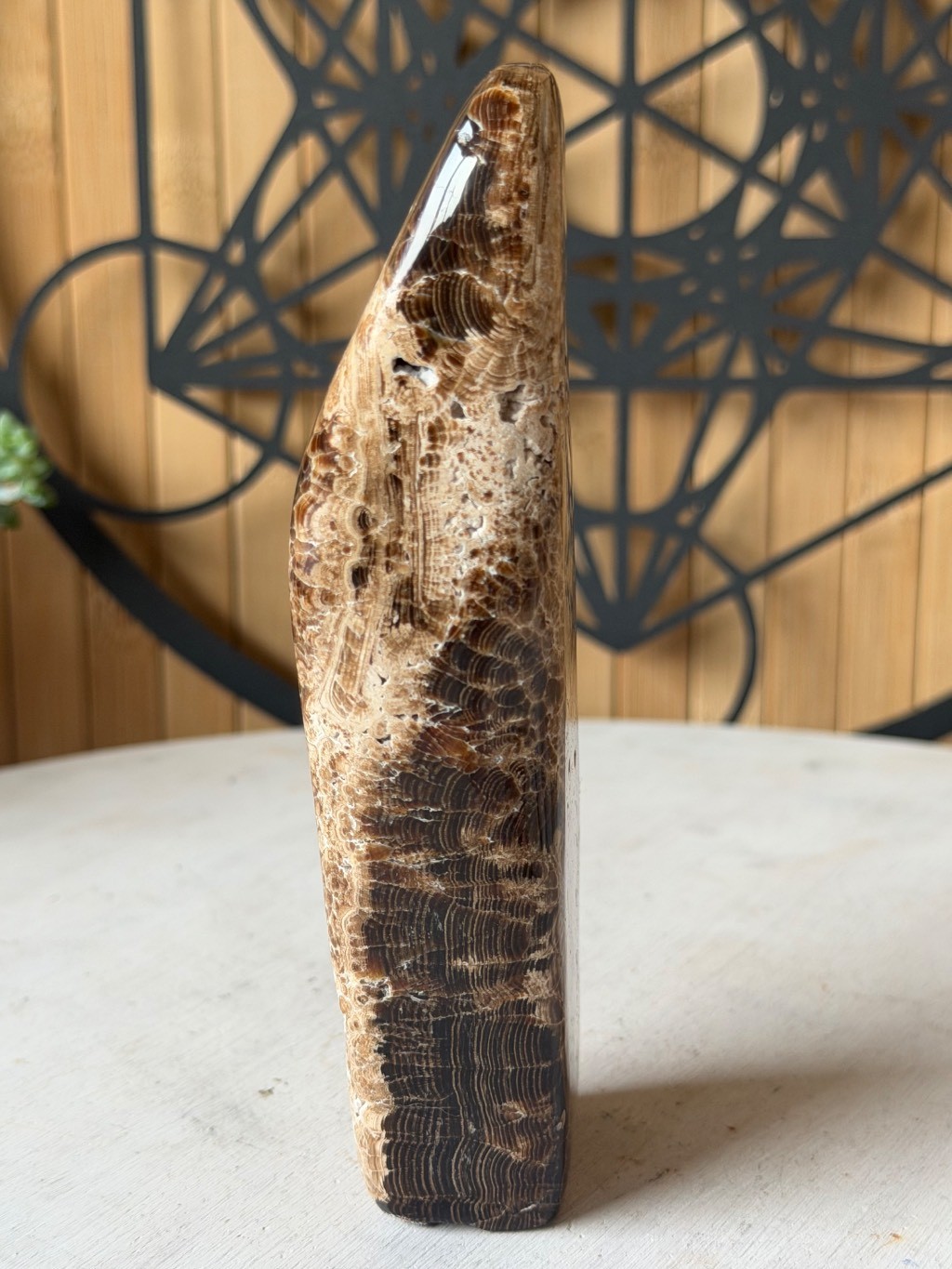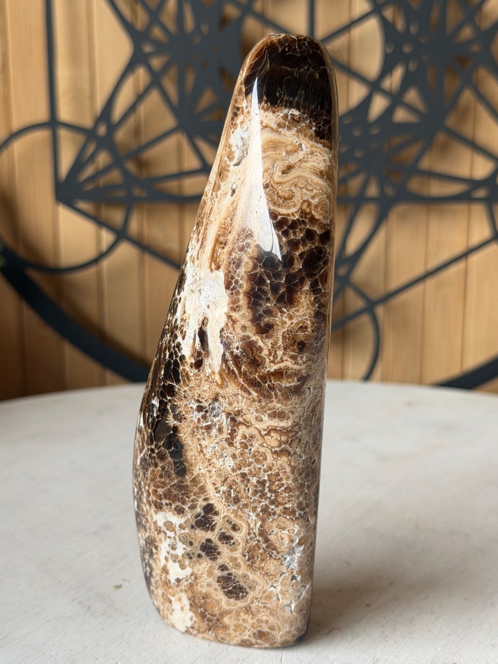 Aragonite marron polie en forme libre du Pakistan,