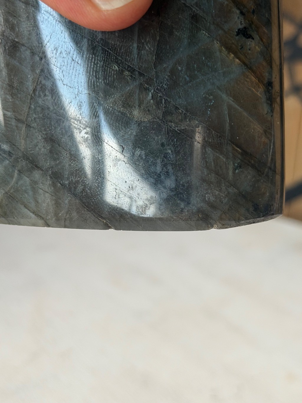 Présence d imperfections naturelles et de polissage notamment sur le côté et la base de la face principale.