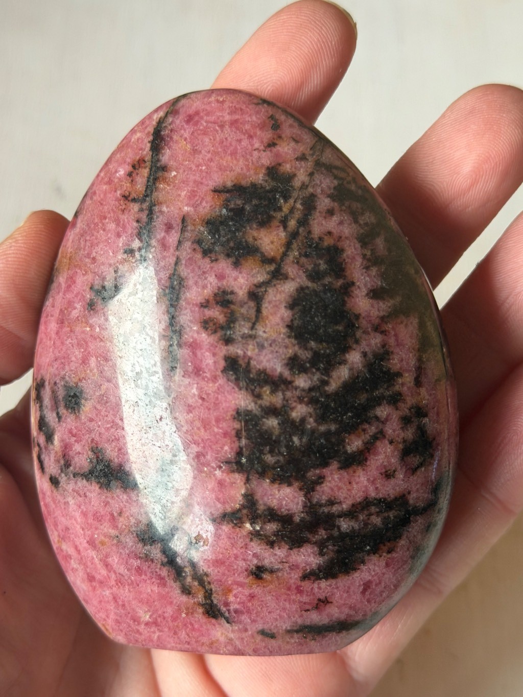 Rhodonite polie en forme libre de Madagascar,