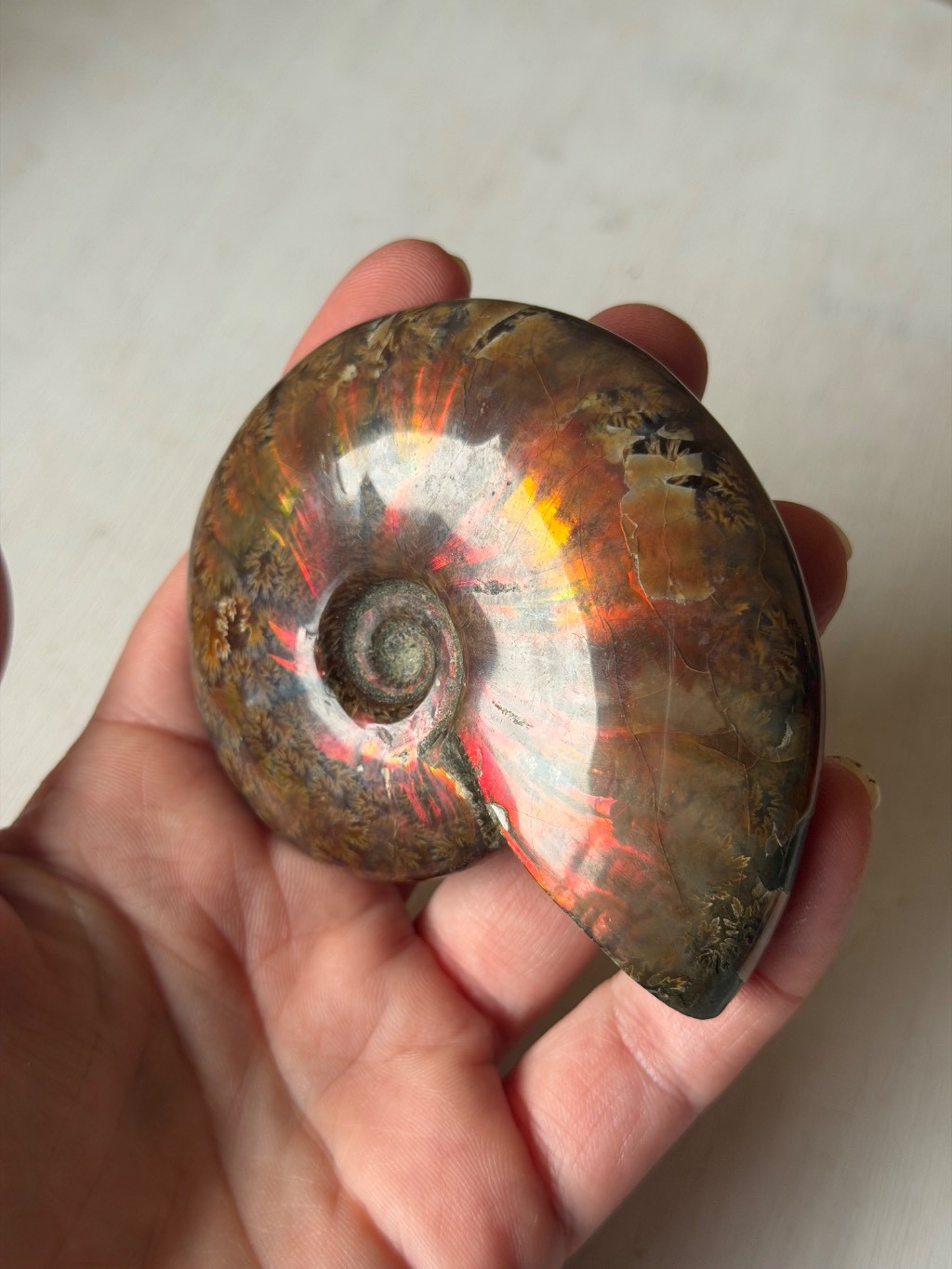Ammonite polie irisée de Madagascar,