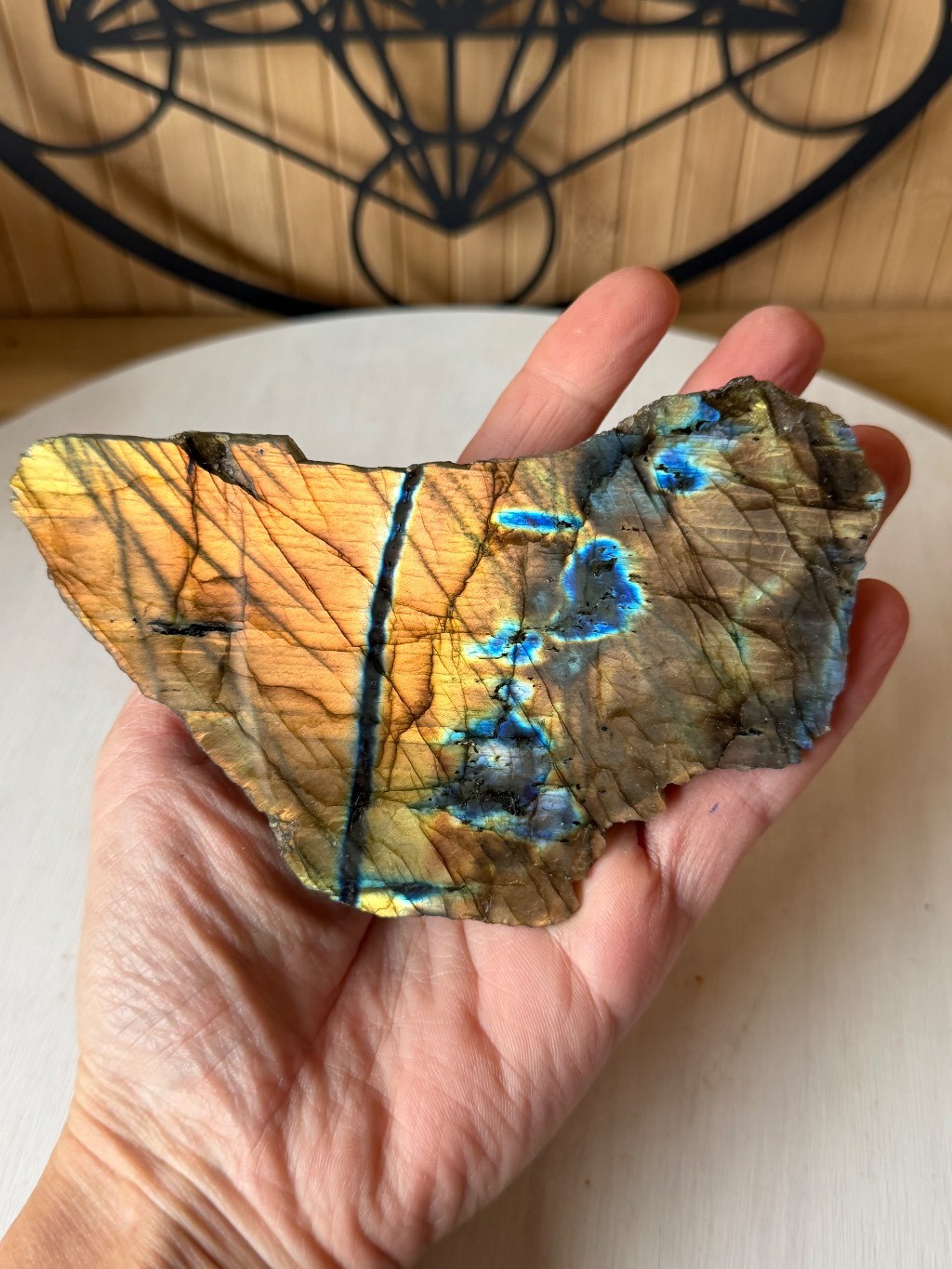 Plaque de Labradorite semi polie de Madagascar,