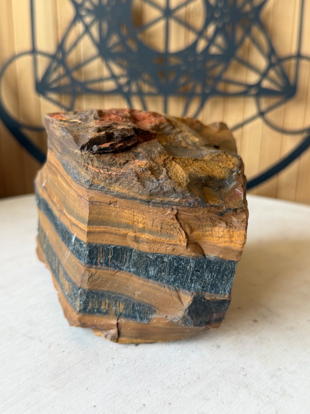Ce cristal unique et imposant est parfait pour les amateurs de minéraux rares et de qualité. Sa couleur chatoyante rappelant l'œil perçant d'un faucon en fait un véritable objet de collection. Avec une origine géologique