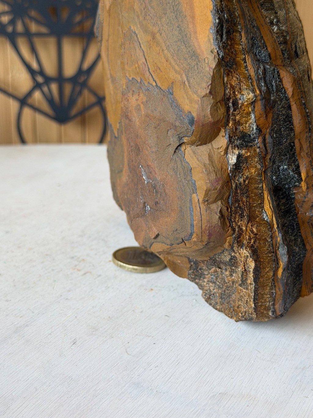Ce bloc d œil de faucon pourra se positionner à la vertical avec l’aide d une petite cale bien placée comme visible sur les dernières photos sinon le positionnement à plat sera nécessaire.