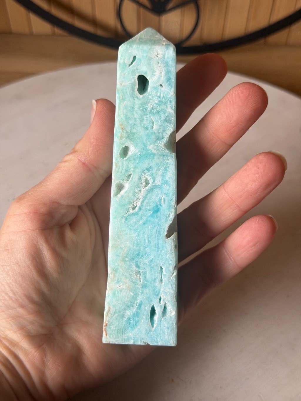🔎 Retrouvez d'autres Pointe en aragonite bleues dans notre rayon Pointes et prismes.