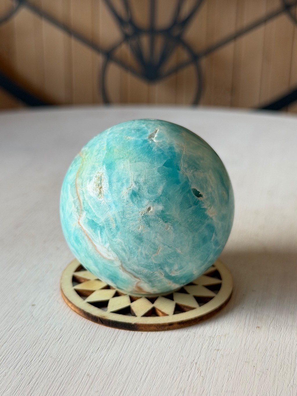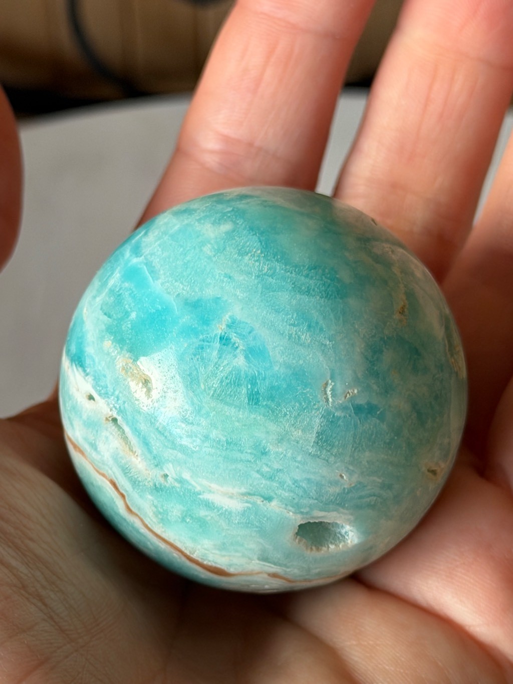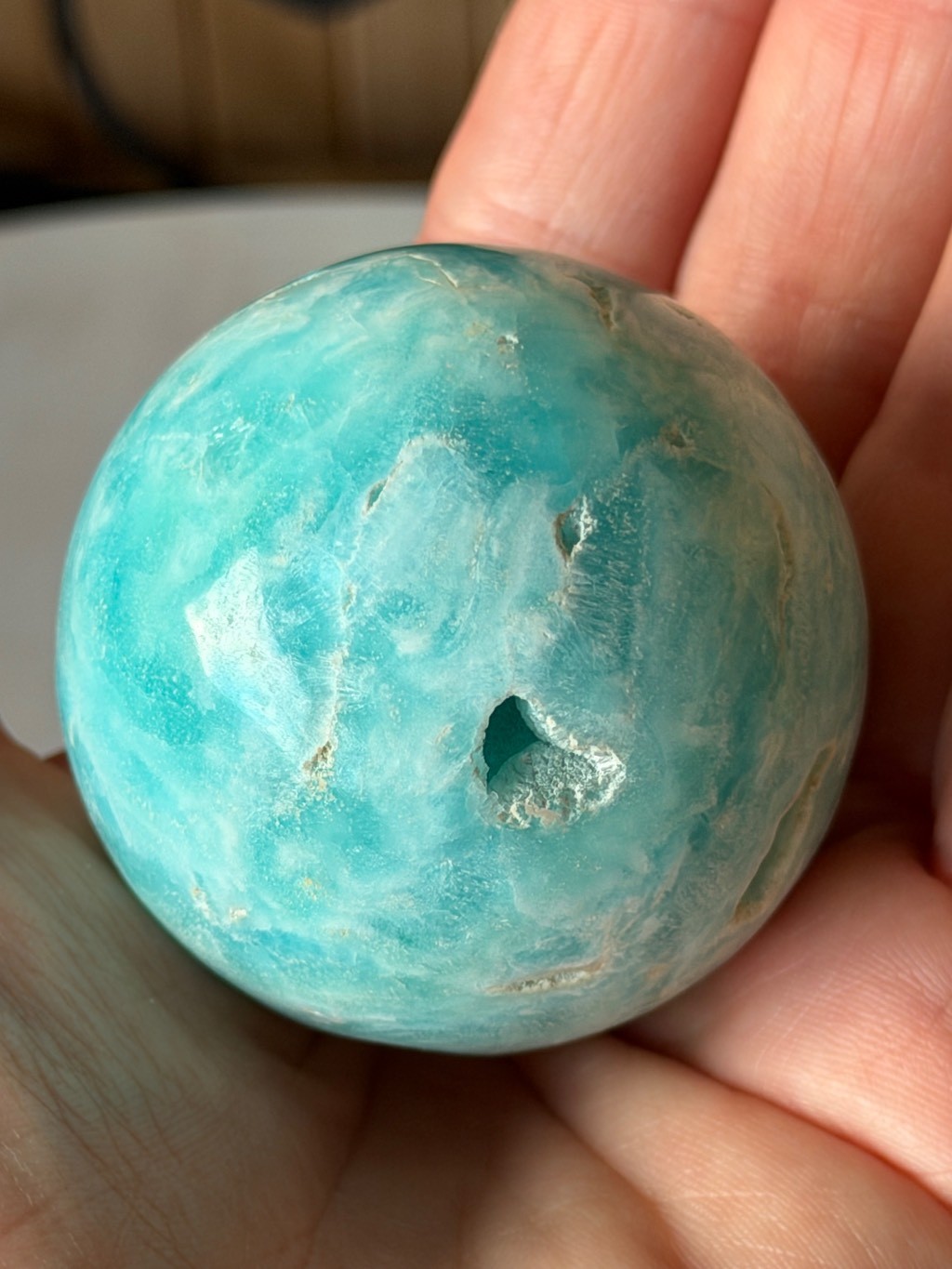 Sphère en aragonite bleue