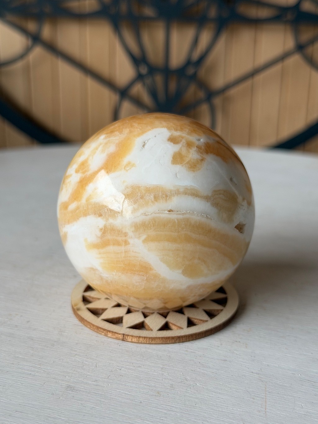 sphère en calcite jaune du Pakistan,